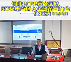 下午三點在我公司四樓電教室召開了RCEP政策解讀會。省外辦、石家莊海關、中信保河北分公司、中國銀行河北分行等部門分別宣介,重點解讀原產地規則、AEO(經認證的經營者)、APEC商務旅行卡、出口信用保險、金融服務等政策及規則,指導企業充分享受政策紅利。